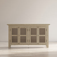 The Relaxed Coastal Style Of Distressed Hardwood Acacia Provides The Perfect Rustic Centerpiece For Your Home With This 54' Rustic Shores Credenza Cabinet. The Compact Design Has Four Doors With Solid Tempered Glass And Two Adjustable Shelves, And The Unique Weathered Finish Is Completely One-Of-A-Kind.