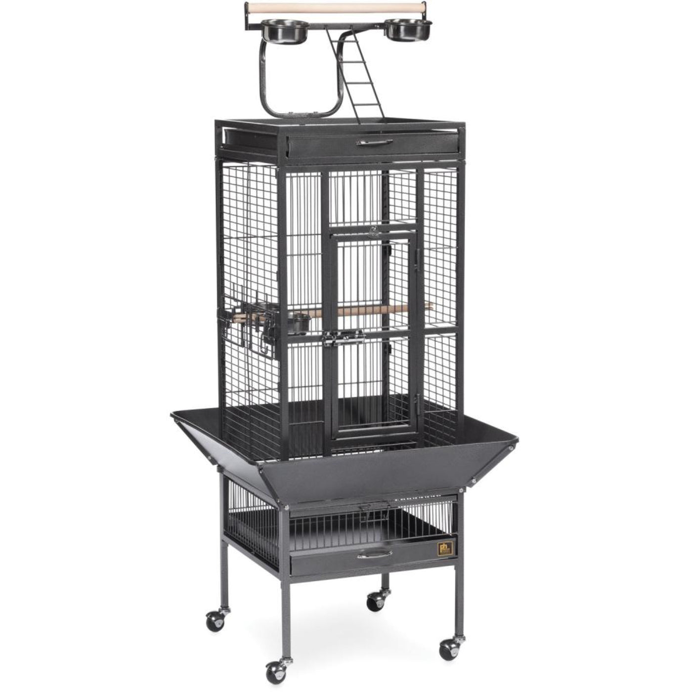 Prevue Pet Products Powder-Coated Steel Construction 3151Blk In Black Hammertone Offers Quality Craftsmanship At An Affordable Cost. Powder-Coated Steel Construction With A Cagetopplaystandto Keep Your Bird Entertained And Content, The Heavy-Duty Push Buttonlock Keeps Your Bird Securely Inside Its Cage When Playtime Is Over. This Select Bird Cage Also Includes Four Stainless Steel Cups, Two Wood Perches And A Caster Stand For Portability. Both Trays And Bottom Grille Are Removable For Ease Of Cleaning While The Rounded Corner Seed Guards Control Mess Around The Cage. Our Powder-Coated Steel Construction Cage In Black Hammertone Measures 18' Long, 18' Wide, 57' High With 3/4' Wire Spacing.