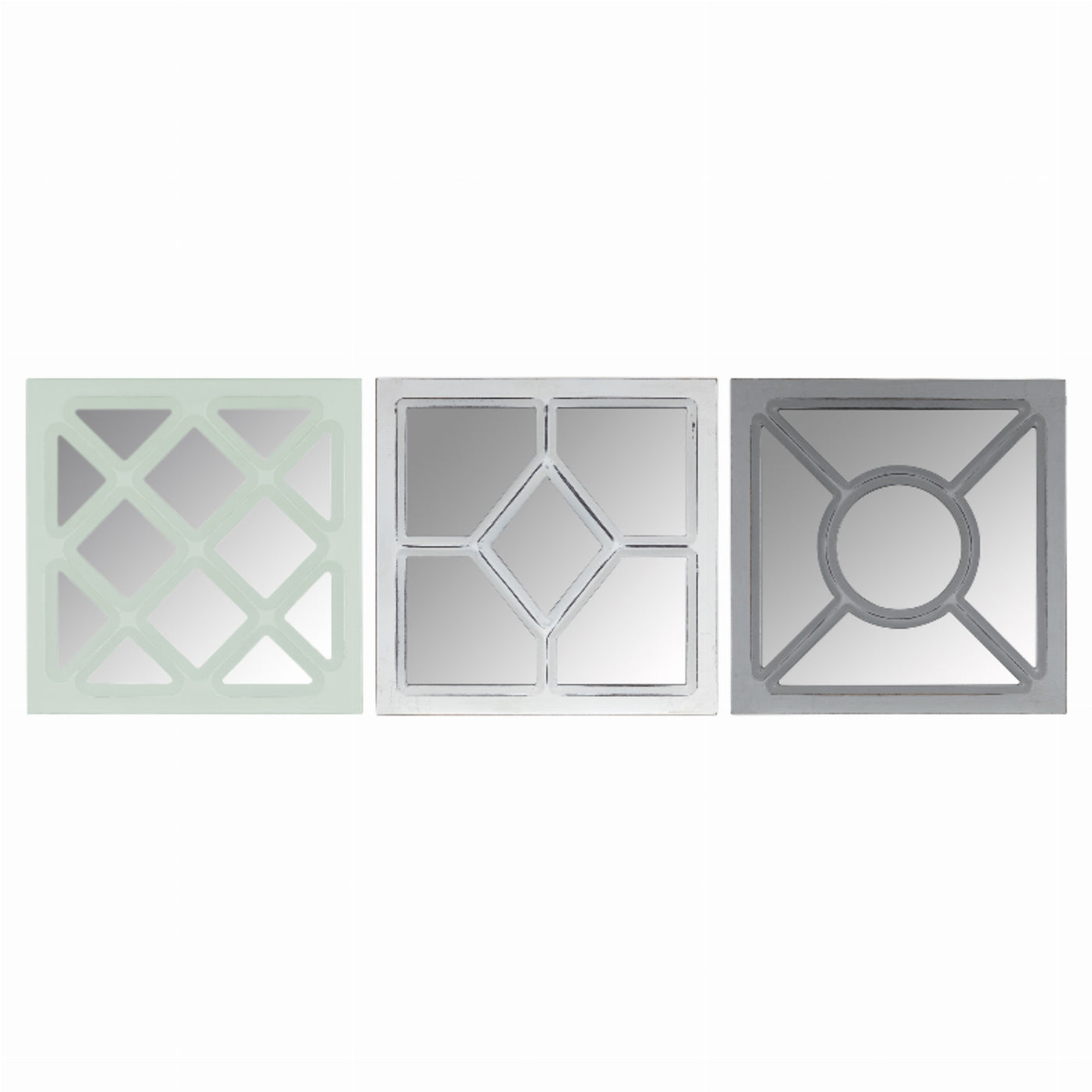 When Placed On Your Living Room Or Bedroom Wall, A Mirror Can Do So Much To Uplift The Look And Vibe Of Your Space. It Will Radiate Natural Or Ambient Light, Offering Vibrance For Your Home. It'S True That A Mirror Can Do Wonders For Your Space. What More If You Have A Set Of Three? The Stratton Home Decor Set Of 3 Tri-Color Square Wall Mirrors Can Make Your Space Come Alive. Coming In Green, White, And Grey, These Three Mirrors Flaunt A Distressed Finish On The Edges. The Geometric, Quatrefoil Design Of Each Piece Makes The Set A Captivating Piece That Can Complete The Look Of Your Home.Made Of 60% Mdf, 40% Glass, Each Mirror Measures 10 W X 0.75 D X 10 H Inches.