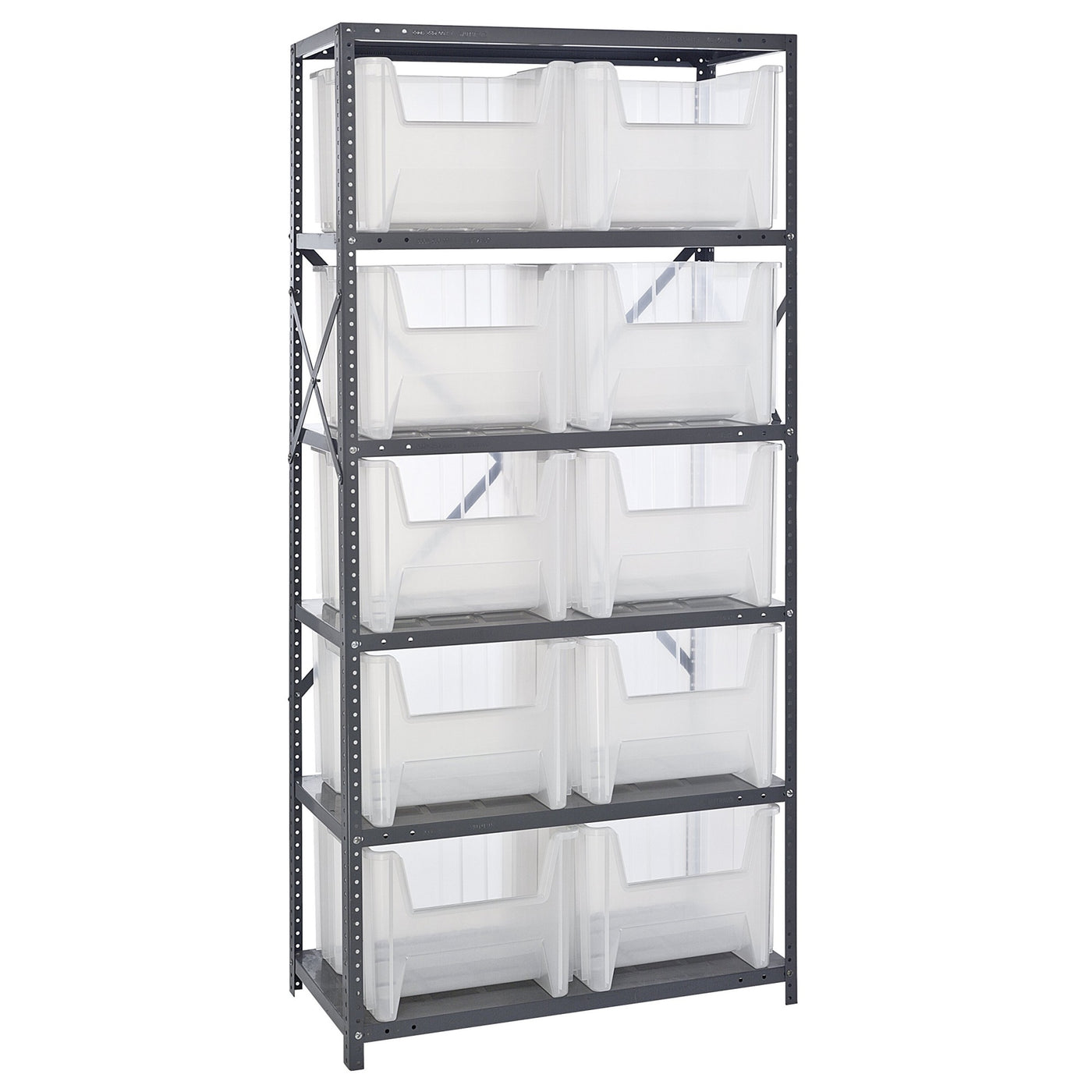 Shelving Unit, 18D X 36L X 75H, Heavy Duty, 400 Lb. Load Capacity Per Shelf, Includes: (6) Shelves And (10) Qgh800 Clear Bins, U