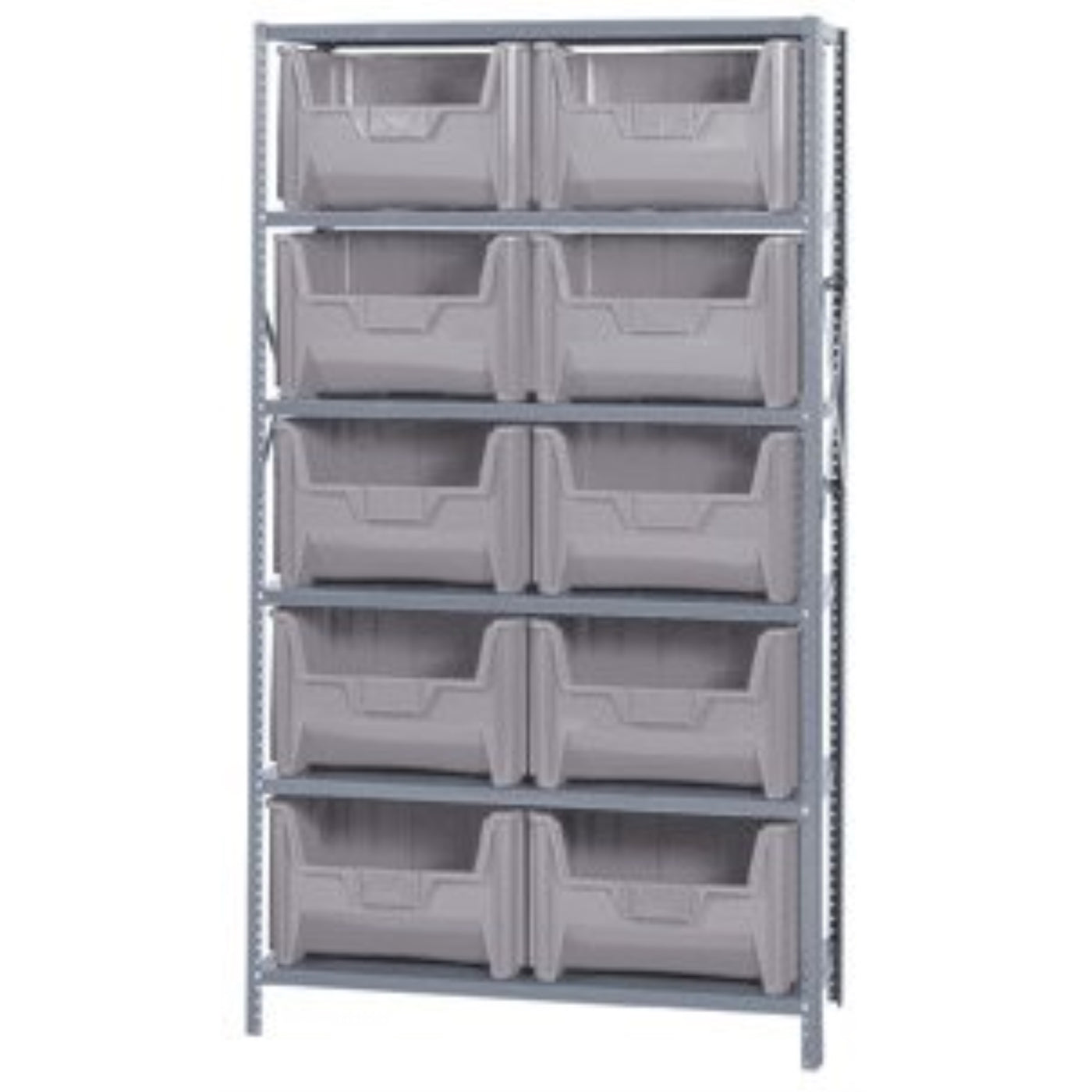 Shelving Unit, 18D X 42L X 75H, Heavy Duty, 400 Lb. Load Capacity Per Shelf, Includes: (6) Shelves And (10) Qgh700 Black Bins, U
