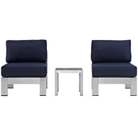 Shore 3 Piece Outdoor Patio Aluminum Sectional Sofa Set - Silver Navy