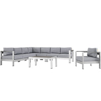 Shore 7 Piece Outdoor Patio Aluminum Sectional Sofa Set - Silver Gray
