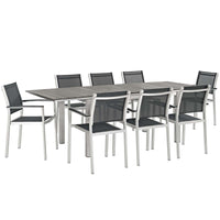 Shore 9 Piece Outdoor Patio Aluminum Outdoor Dining Set - Silver Black