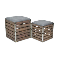 Silosong Set Of 2 Square Wood Slat Storage Bench - Gray