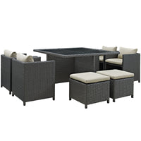 Sojourn Outdoor Patio Dining Furniture Set - Sunbrella Cushions, Synthetic Rattan, Uv Protection, Aluminum Frame - 9 Piece