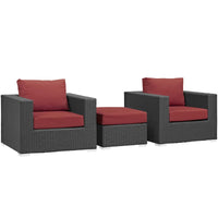 Enhance Your Patio With The Innovative Sojourn Outdoor Patio Furniture Series. The Sojourn Patio Outdoor Collection Provides A Versatile Seating Experience That Can Be Easily Rearranged To Suit Your Needs. With Top-Of-The-Line Sunbrella Fabric Cushions, Synthetic Rattan Weave, Uv Protection, And A Powder-Coated Aluminum Frame, This Outdoor Conversation Set Is Perfect For Enjoying Your Time Outdoors. This Particular Set Includes One Sojourn Rattan Outdoor Patio Ottoman And Two Sojourn Rattan Outdoor Patio Armchairs.