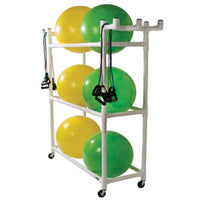 Please Note: This Item Cannot Ship Via 3-Day Delivery.Stores And Safely Transports Large Balls With A Diameter Of 16 Or Larger Plus Jump Ropes, Exercise Bands, And Resistance Tubes. Lightweight, Yet Strong, Durable And Maintenance Free. Roll Lock Casters Secure The Cart In Place With The Simple Push Of A Lever. Measures 67L X 19W X 67H And Easily Passes Through A Standard Doorway. Some Assembly Required. Cart Only.