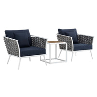 Stance 3 Piece Outdoor Patio Aluminum Sectional Sofa Set - White Navy