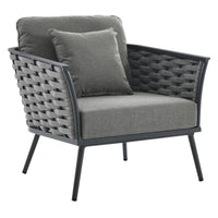 Gather Family And Friends For Pleasant Weather And Good Conversation With The Stance Outdoor Patio Furniture Collection. Boasting A Contemporary Modern Look, Stance Outdoor Patio Arm Chair Features Woven Polyester Fabric Rope Seat Back And Flared Powder-Coated Aluminum Frame, While Waterproof All-Weather Fabric Cushions With Dense Foam Padding Provide A Relaxing Spot To Lounge. A Versatile Patio Arm Chair Designed For Long-Lasting Durability, Each Piece In The Stance Outdoor Patio Collection Can Be Mixed And Matched And Effortlessly Arranged To Fit The Spontaneous Needs Of You And Your Guests. Chair Weight Capacity: 331 Lbs. Set Includes: One - Stance Dining Armchair