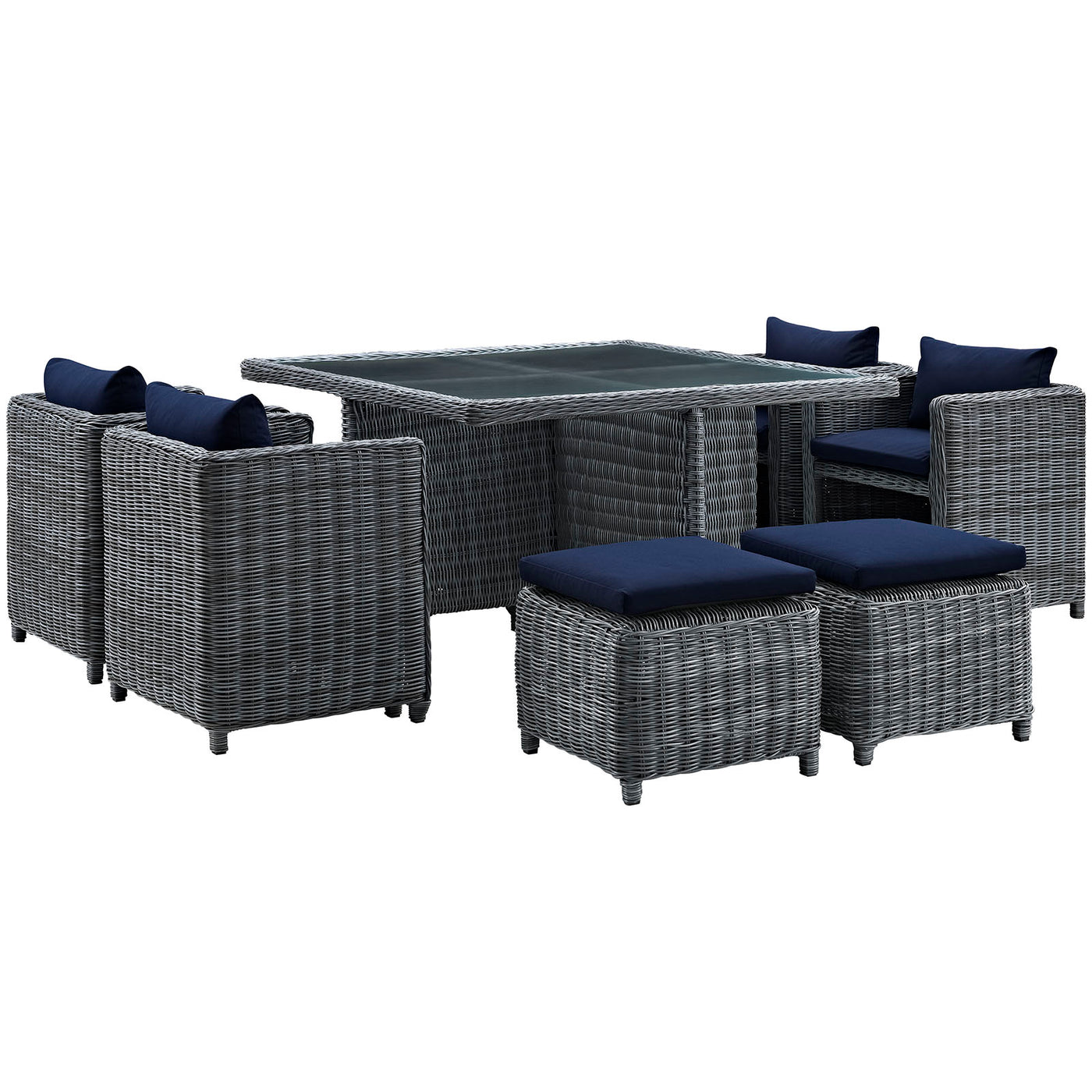 Summon 9 Piece Outdoor Patio Sunbrella Dining Set - Canvas Navy