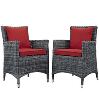 Summon Outdoor Patio Dining Arm Chair - Two-Tone Rattan Weave, Sunbrella Cushions, Aluminum Frame - Ideal For Patio, Backyard, Poolside Gathering