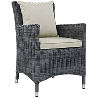 Indulge In The Ultimate Outdoor Experience With Unparalleled Comfort And Top-Notch Quality. The Summon Outdoor Patio Dining Arm Chair Is Designed To Perfection, Boasting A Stunning Two-Tone Synthetic Rattan Weave, Luxurious All-Weather Cushions Made With The Renowned Sunbrella Fabric For Uv Protection, And A Robust Powder-Coated Aluminum Frame. With Its Sleek Rounded Arms And Sophisticated Modern Design, This Armchair Is A Vital Component Of The Avant-Garde Outdoor Sectional Series, Ideal For Elevating Any Patio, Backyard, Or Poolside Gathering. This Particular Set Includes One Summon Dining Armchair.