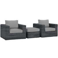 Indulge In The Great Outdoors With Utmost Comfort And Top-Notch Quality. The Summon Outdoor Patio Sectional Sofa Set Is Designed To Provide An Exceptional Experience. It Boasts A Stunning Two-Tone Synthetic Rattan Weave, Accompanied By Plush All-Weather Cushions Made With Industry-Leading Sunbrella Fabric That Offers Uv Protection. The Sturdy Powder-Coated Aluminum Frame Ensures Durability. With Its Elegant Modern Design, The Summon Patio Sectional Sofa Set Is A Part Of A Cutting-Edge Outdoor Sectional Series That Is Perfect For Enhancing Any Patio, Backyard, Or Poolside Gathering. This Particular Set Includes One Summon Rattan Outdoor Patio Ottoman And Two Summon Rattan Outdoor Patio Armchairs.