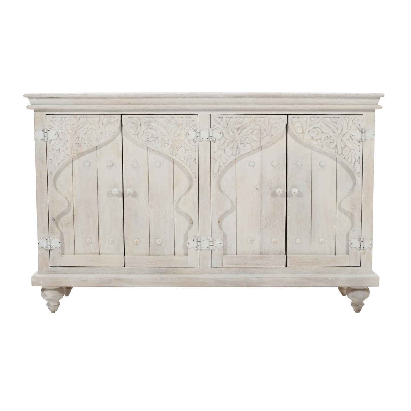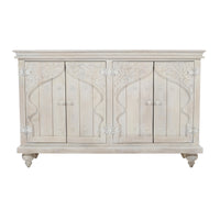 Taj 60' Hand Carved Solid Wood Global Bohemian Four-Door Sideboard Cabinet