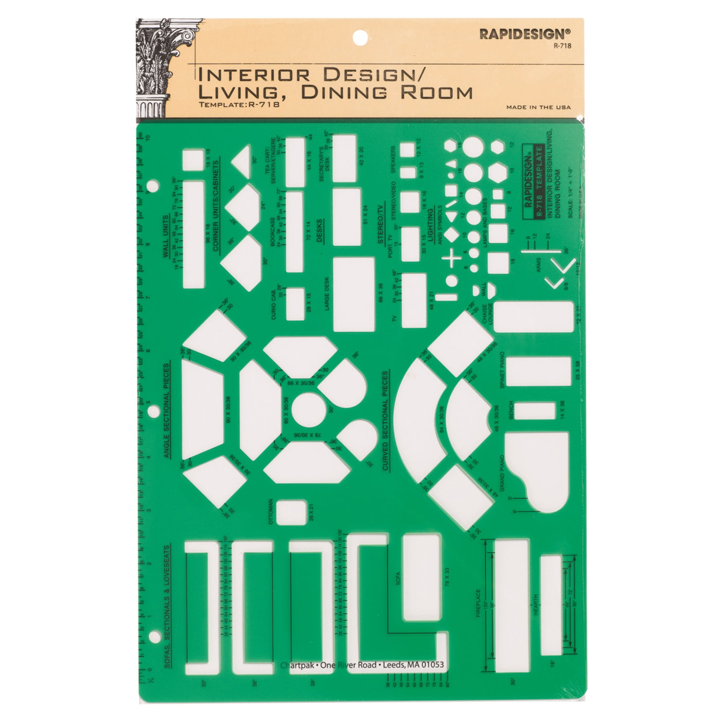 Pkr-718, Templt Int Des Living/Dining. Manufactured By Pickett. Inking Templates Are Essential Tools For Technical Drawings And Other Creative Projects That Call For Precision; A Template Saves Time And Allows You To Easily Create Consistent Shapes For Technical Drawings, Designs Or Scrapbooking. This Template Is An Invaluable Resource For Planning Interior Design For A Living Room Or Dining Room. It Includes End Tables, Couches, Credenzas, Fireplace, Lighting Symbols, Lamps And Even A Piano; Envision Your Space (Or The Space Of Your Clients) Without Having To Move A Single Piece Of Furniture.