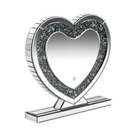 Theo 20 Inch Modern Vanity Table Mirror, Heart, Crystal Trim, Glass, Silver