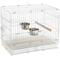 Prevue Pet Products Travel Cage 1305 Is An Ideal Solution For Short-Term Traveling. Perfect For Medium To Large Sized Birds, The 9' By 9' Side Access Door Allows Birds To Walk Right Into The Cage. A Bottom Grille And Plastic Pull Out Tray Make Cleaning Effortless While Storage Is Simple As You Can Fold The Cage Flat. Includes Two Stainless Steel Dishes Plus One Perch And Measures 20' Long, 12' Wide, 16' High With 3/4' Wire Spacing.