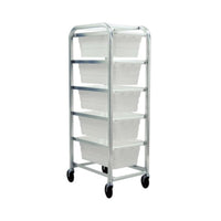 Tub Rack, Mobile, 60 Lb. Weight Capacity Per Bin, End Loading, Holds (5) Tub2516-8 Blue Tubs (Included), Welded Aluminum Constru