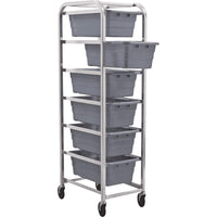 Tub Rack, Mobile, 60 Lb. Weight Capacity Per Bin, End Loading, Holds (6) Tub2516-8 Gray Tubs (Included), Welded Aluminum Construction, (4) 5 Swivel Polyolefin Casters
