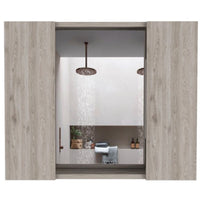 Tuhome Artemisa Medicine Cabinet, Two-Door Cabinet, Mirror, One External Shelf-Light Grey, For Bathroom