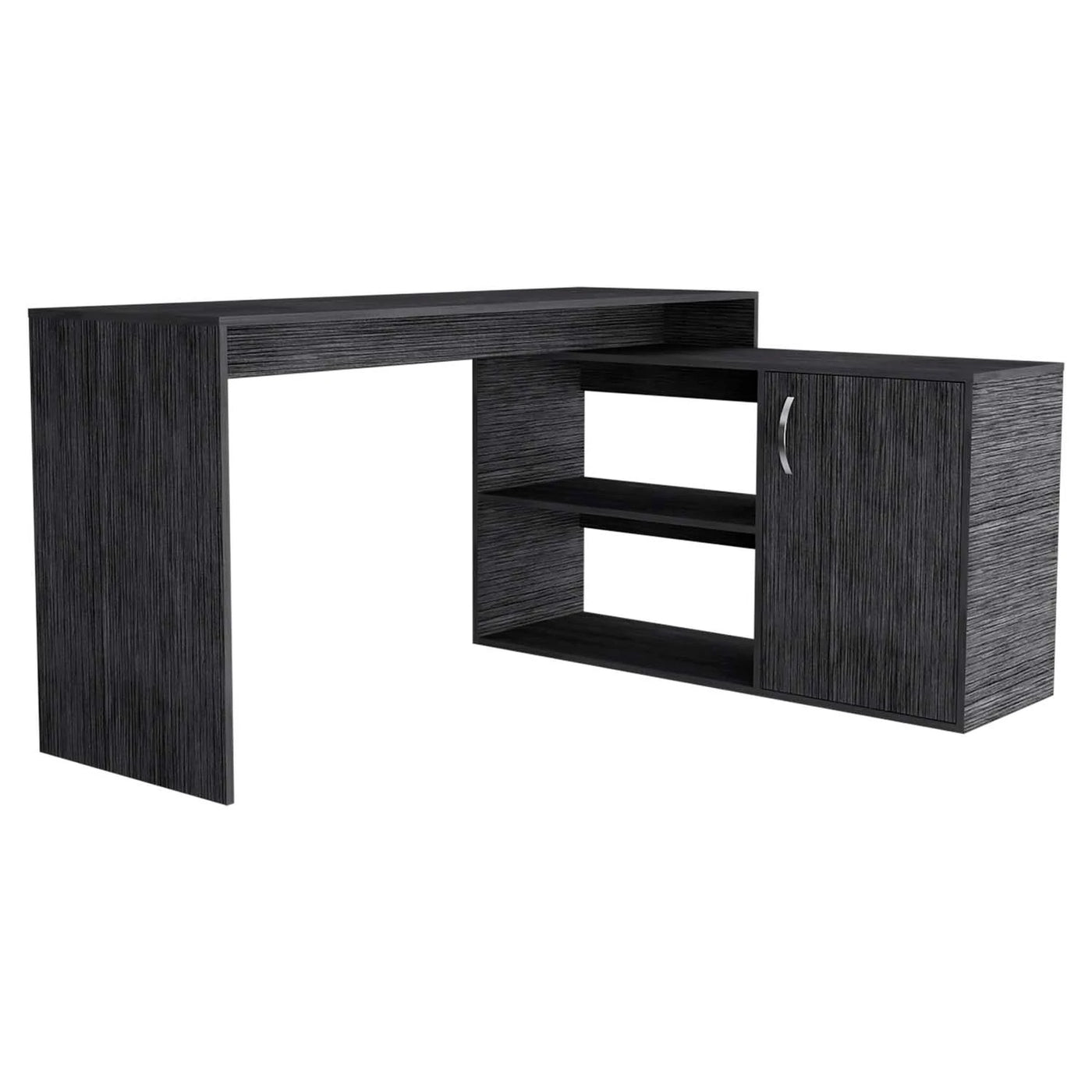 Tuhome Axis Desk, Countertop Desk, Two Internal Shelves, One Door Cabinet, Two Open Shelves, Smoky Oak, For Office