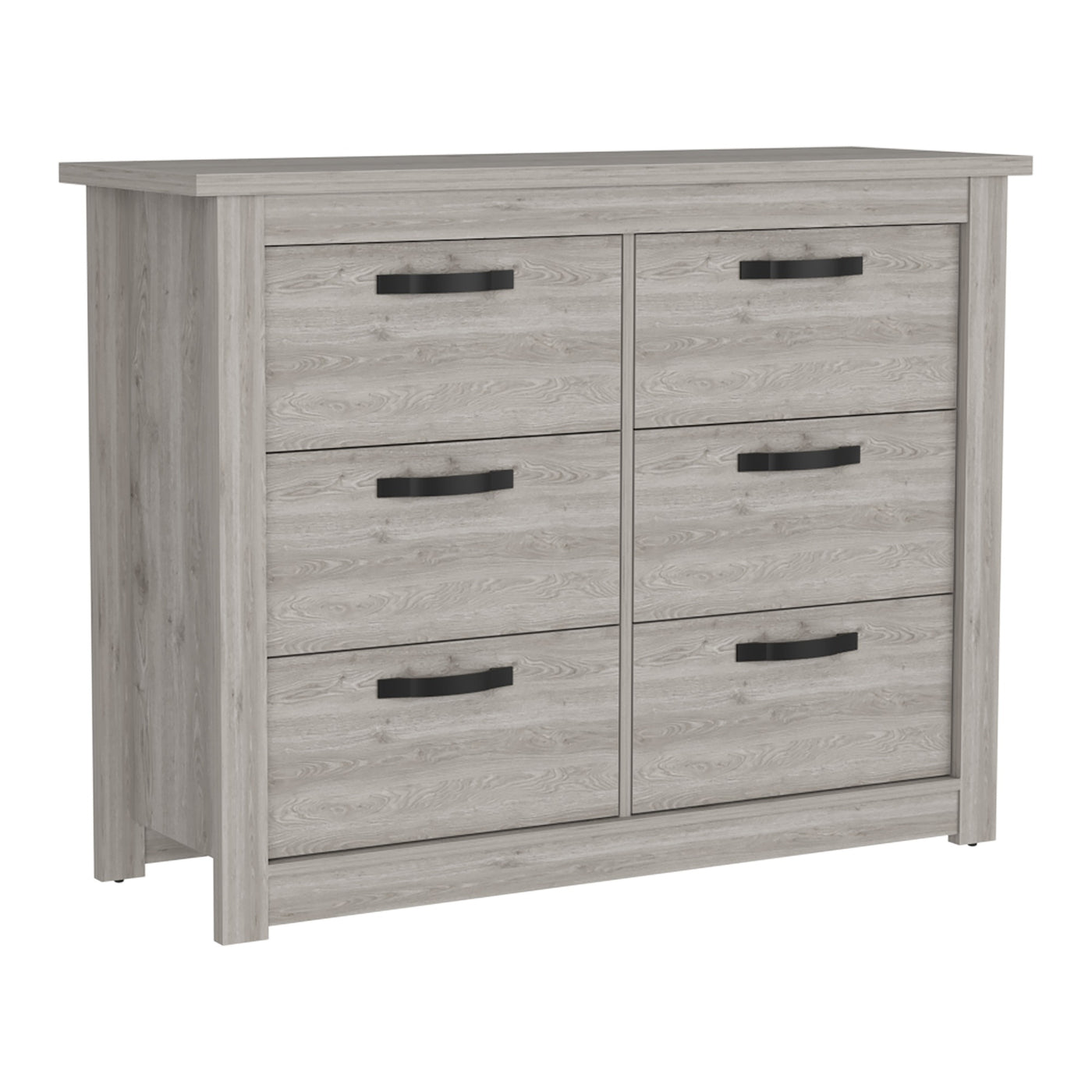 Tuhome Becca 6 Drawer Double Dresser , Four Legs, Metal Hardware, Countertop-Light Grey, For Bedroom
