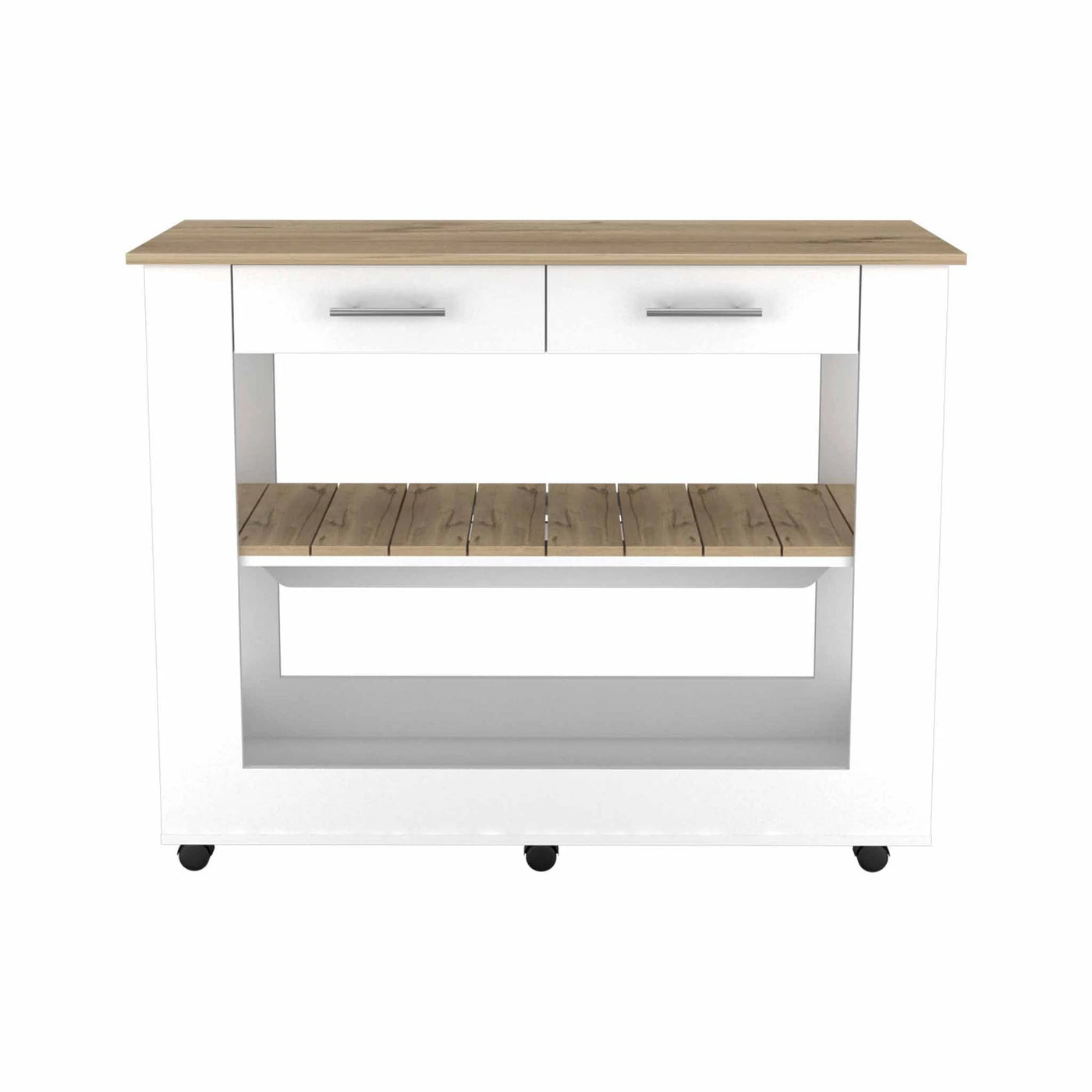 Tuhome Cala Kitchen Island 46, Countertop Table, Six Caster Wheels, Two Drawers, Lower Open Shelf-White/Light Oak, For Kitchen R