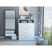 Tuhome Continental Dresser, Countertop, Four Drawers, One Shelf, White, For Bedroom