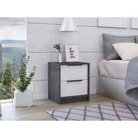 The Tuhome Kaia Nightstand Is A Multi-Functional Piece That Will Look Great In Your Bedroom Or Living Roomdesigned With A Resistant Smoky Oak-White Particleboard Finishgiving It A New Look That Mixes Modern Design With A Sleek Appearance. This Nightstand Features Two Metal-Handled Drawers(7,4''H X 14,8''W) And A Large Top Area. This 19 High Nightstand Combines Modern Form And Style With A Stunning Finish To Make A Statement In Any Room. Total Size (16,1''W X 14,37''D X 18,90''H)
