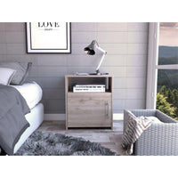Tuhome Nordico Nightstand, One Shelf, One-Door Cabinet, Metal Handle, Countertop, Light Grey, For Bedroom
