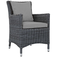 Indulge In The Ultimate Outdoor Experience With Unparalleled Comfort And Top-Notch Quality. The Summon Outdoor Patio Dining Arm Chair Is Designed To Provide You With A Luxurious Seating Option. It Boasts A Stunning Two-Tone Synthetic Rattan Weave, Along With Plush All-Weather Cushions Made From The Renowned Sunbrella Fabric, Ensuring Durability And Protection Against Harmful Uv Rays. The Chair Is Supported By A Robust Powder-Coated Aluminum Frame, Guaranteeing Stability And Longevity. With Its Sleek Rounded Arms And Modern Aesthetic, The Summon Patio Dining Arm Chair Is A Perfect Addition To Any Patio, Backyard, Or Poolside Gathering. This Set Includes One Exquisite Outdoor Patio Arm Chair, Allowing You To Create A Stylish And Inviting Outdoor Space.