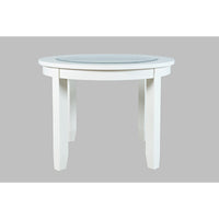 Contemporary Style With A Solid Tempered Glass Inlay, This Urban Icon 42' Round Dining Table Features Three Unique Color Options And Modern Beveled Edges. Available In White, Black, And Merlot Finishes.