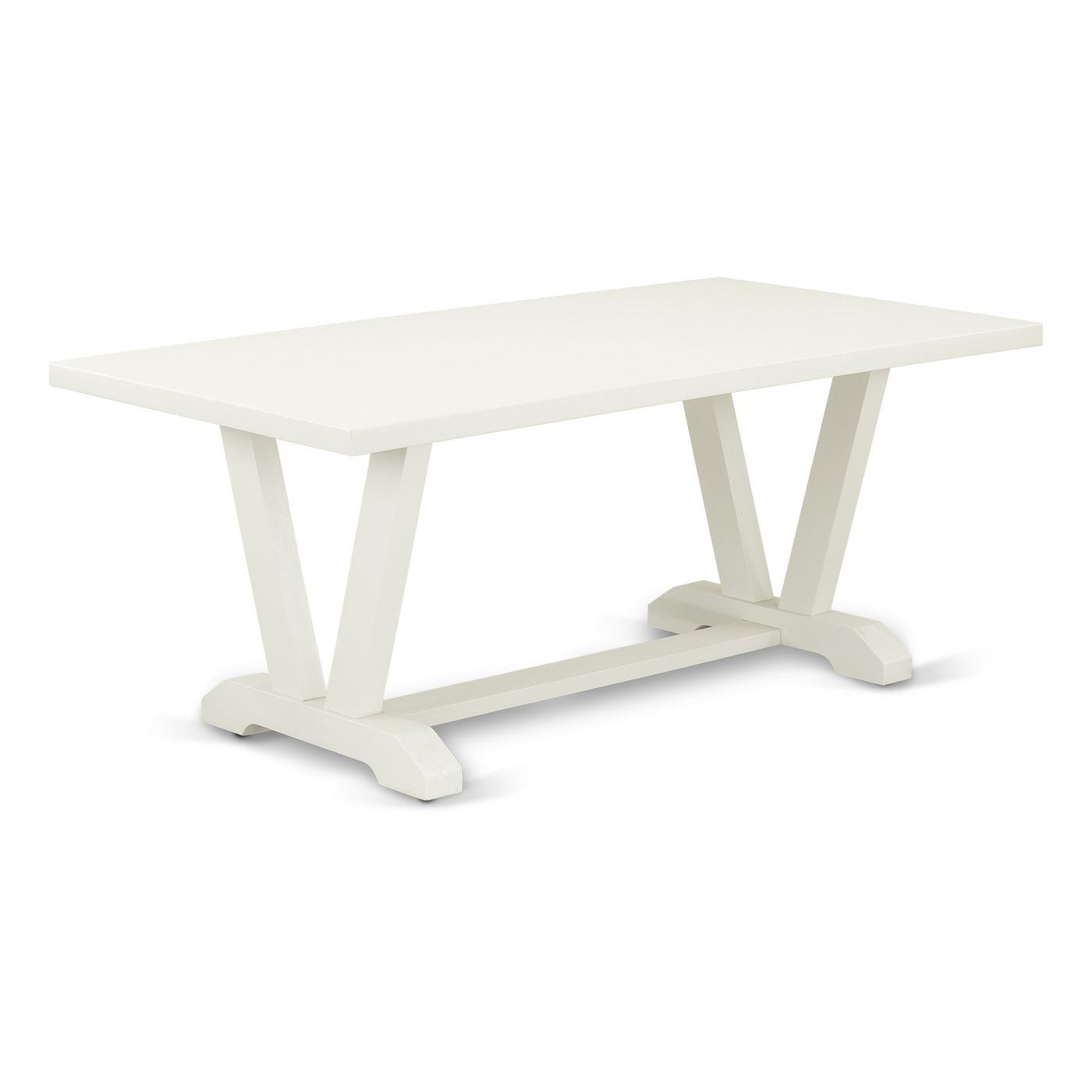 V027El207-7 Ergode 7-Pc Modern Dining Table Set - 6 Parson Chairs, Smoke Linen Fabric Seat, Rectangular Table Top, Wooden Legs, Linen White Finish