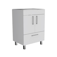 The Tuhome Velloc Single Bathroom Vanity Is Ideal For A Touch Of Organization And Style In Your Bathroom.Its Modern And Ergonomic Design Works Perfectly For Any Bathroom, Even The Smallest Ones (33,46''H X 23,62''W X 17,71''D). It Has A Sizeable Double Door Cabinet And One Drawer To Keep Your Objects Safer With A Large Storage Capacity (22.4''W X 15.5''H) And The Perfect Superior Top (29.5'')Designed To Withstand The Humidity Of The Bathroom Perfectly.Includes An Elegant Metallic Element And A White Finish. **Faucet Not Included**