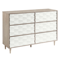 The Vespera 6-Drawer Dresser Brings Contemporary Modern Intrigue To The Home Or Apartment Featuring A Grooved Wave Design On The Front, Tapered Legs, And Ample Concealed Storage Space. Functional, Beautiful, And Streamlined, This Spacious Dresser Stores Clothes, Linens, Home Essentials, And More Without Sacrificing Style. A Sturdy Mindi Wood And Particleboard Construction With A Wood Grain Finish Make It A Durable Addition In A Variety Of Spaces In The Home. Six Full-Glide Drawers Provide Ample Storage Space And Non-Marking Foot Glides Protect Your Flooring. Easy To Follow Assembly Instructions Included. Set Includes: One - Vespera 6-Drawer Dresser