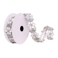 Vickerman 1.5 X 10 Yd White/Silver Flower Wired Edge Christmas Ribbon.