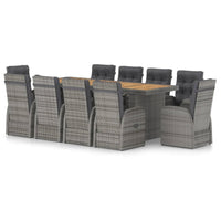 Vidaxl 11 Piece Outdoor Dining Set With Cushions Poly Rattan Gray