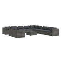 Vidaxl 12 Piece Patio Lounge Set With Cushions Gray Poly Rattan