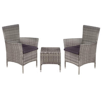 Vidaxl 3 Piece Bistro Set Poly Rattan Gray