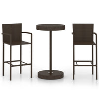 Vidaxl 3 Piece Garden Bar Set Poly Rattan Brown