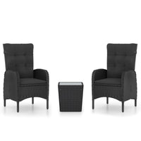 Vidaxl 3 Piece Garden Bistro Set Poly Rattan And Glass Black
