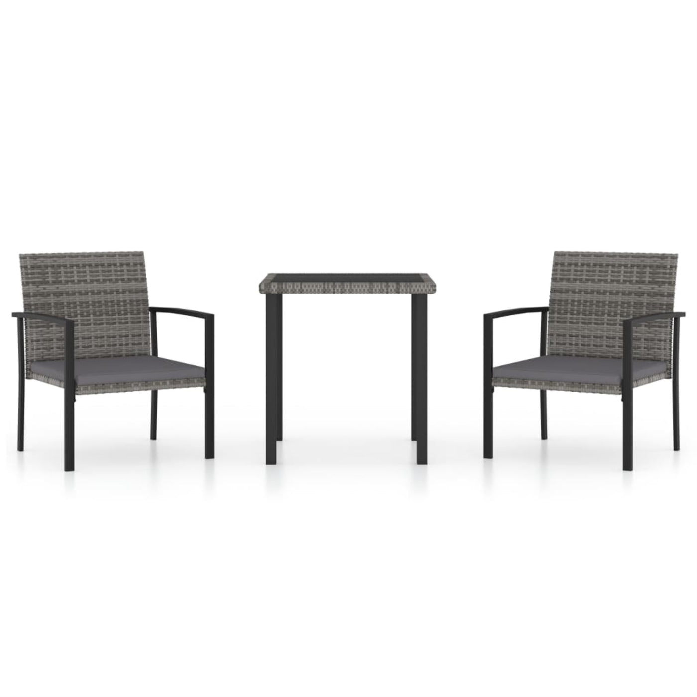 Vidaxl 3 Piece Garden Dining Set Poly Rattan Gray