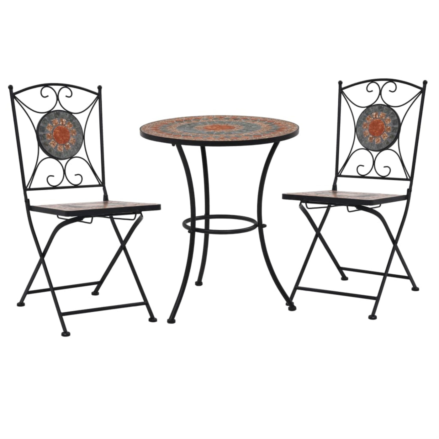 Vidaxl 3 Piece Mosaic Bistro Set Ceramic Tile Orange/Gray