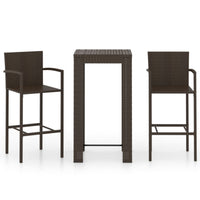 Vidaxl 3 Piece Outdoor Bar Set With Armrest Poly Rattan Brown