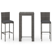 Vidaxl 3 Piece Outdoor Bar Set With Cushions Poly Rattan Gray