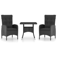 Vidaxl 3 Piece Patio Dining Set Poly Rattan And Glass Black