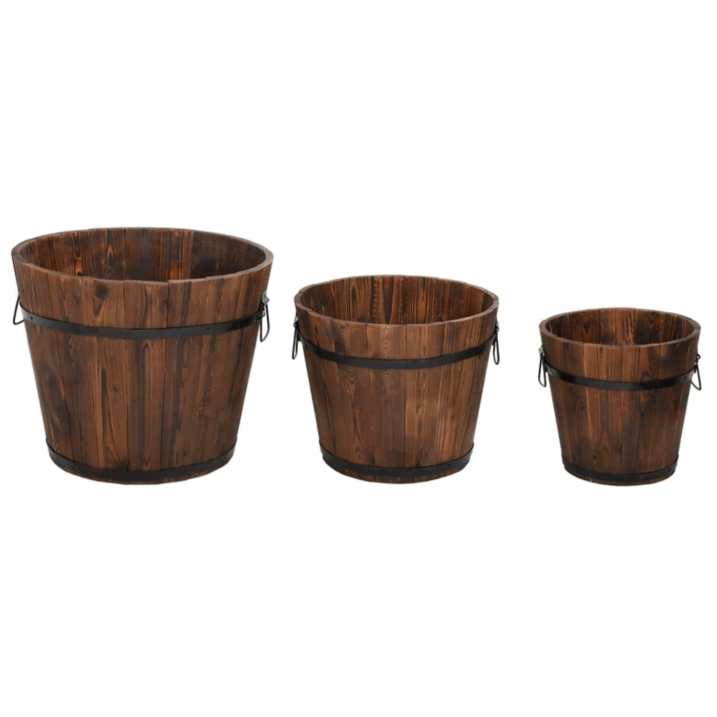 Vidaxl 3 Piece Wooden Bucket Planter Set Solid Wood Fir