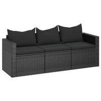 Vidaxl 3-Seater Patio Sofa With Cushions Black Poly Rattan