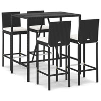 Vidaxl 5 Piece Patio Bar Set With Cushions Black Poly Rattan